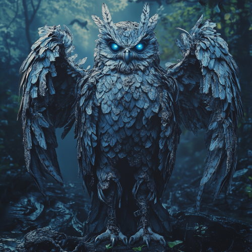 Realistic anthropomorphic owl zombie in gothic style, full body detailed illustration, detailed illustration of zombie wings, high level of detail, high resolution, gothic fashion design, dark blue eyes, background is poison swamp, high quality, high resolution, anime artist style. --v 6.1