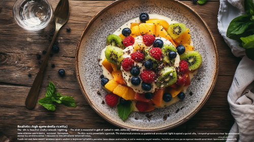 "Realistic high-quality close-up of a beautifully plated dish of [nome della ricetta], captured in natural lighting. The dish is presented on a rustic wooden table with subtle, fresh ingredients scattered around as garnish. The food is warm, fresh, and inviting, with visible textures and vibrant colors. The setting includes small touches, like a folded napkin, silver cutlery, and a glass of water in the background, giving the scene a cozy, appetizing feel."Chia pudding : 30 g de graines de chia mélangées avec 200 ml de lait de coco et 100 g de mangue coupée en dés, laissé reposer toute la nuit. --ar 16:9