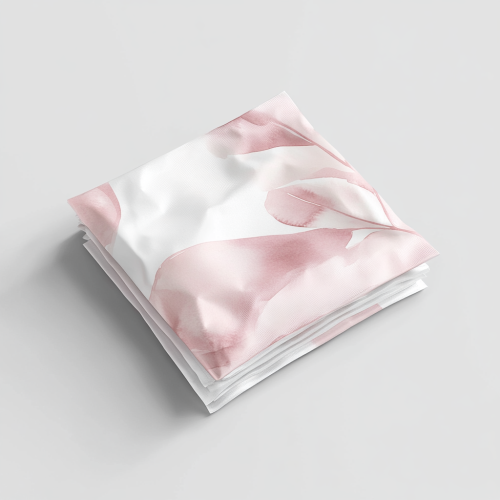 detailed photorealistic watercolor white wet wipes, wrapped in a luxurious white package with light pink soothing patterns, soft colors, luxurious aesthetics, beautiful illustration with realistic details, high resolution, light gray background