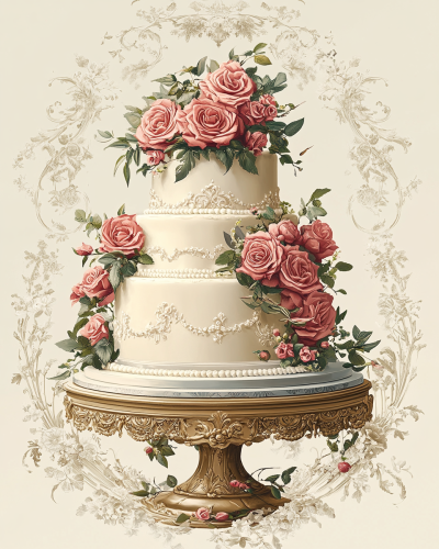 Create a book cover design that is all about elegant Wedding Cake Designs. The book cover design has a Victorian style design and a Rococo style frame within the design. --ar 4:5 --v 6.1 --stylize 300