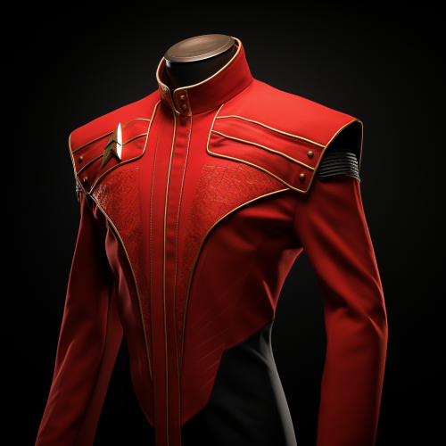 hyper realistic sci-fi Star Trek captain Seven of 9. Star Trek red command uniform.