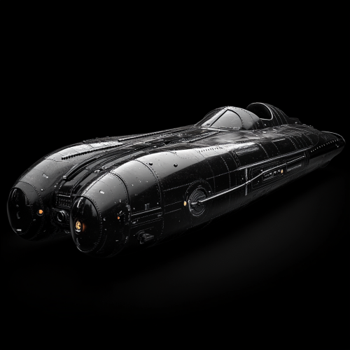 prototype 1930s explorer vehicle, ship of theseus edition, frontal side view, intricate details, photography, retrofuturistic film noir, Greg Manchess, :wundervoll-ai:0, --style raw --s 250