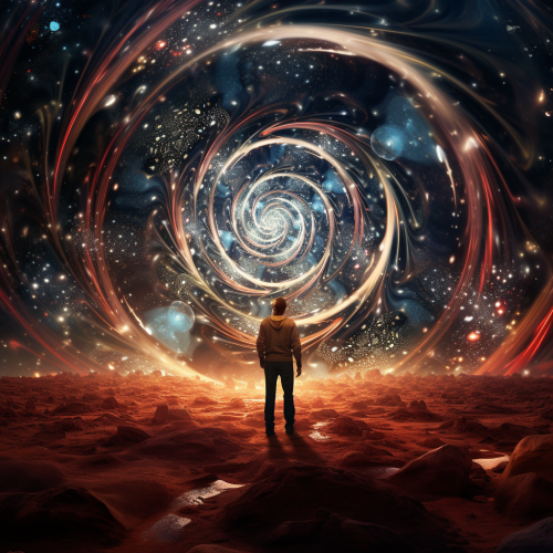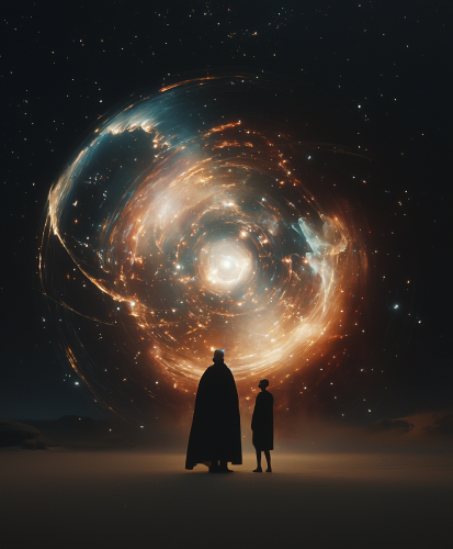 going through a portal, made of constellations and faceted opals, iridescent, lustrous, sparking, wonder, in the liquid galaxy, --sref 3240582097 --v 6.0