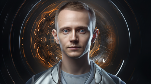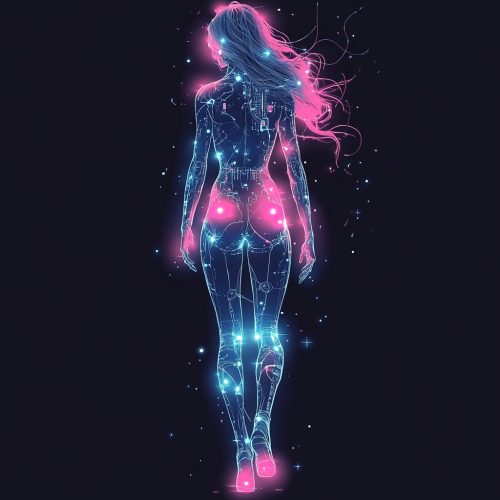 standing between time, one foot in the past, one foot in the future, blue and purple with magenta accents --style raw --sref 1187806033 809625481 824935293 3322162017 --personalize 4a59zhx --ar 2:3 --v 6.0