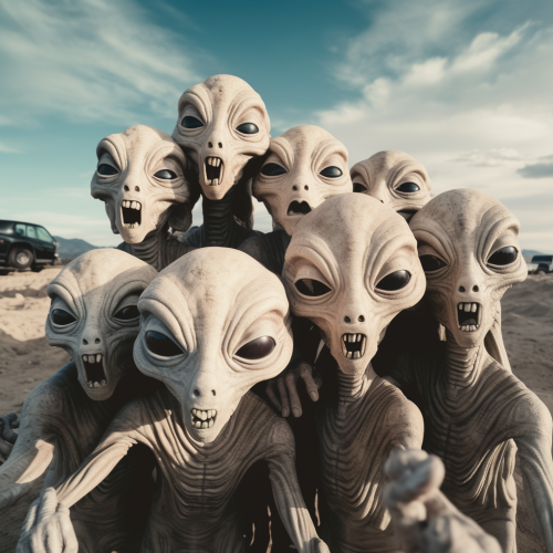 Looking up at the sky and seeing a flotilla of UFOs of the strangest shapes primordial spirit, blue and purple with magenta accents --style raw --sref 1187806033 809625481 824935293 3322162017 --personalize 4a59zhx --ar 2:3 --v 6.0