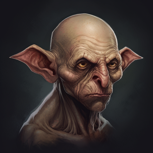 a bald creature with pointed elf like ears, circular eyes and no chin. he has no body, and only 2 legs are connected to his humongous bald head. he has a huge nose pointing downward, high quality --v 5.0