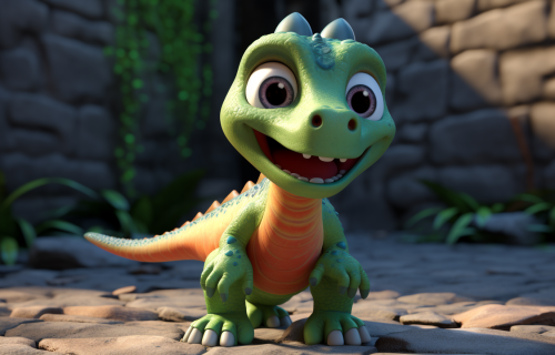 mini dinosaur cute, delivery courier, whole body, disney style, unreal engine, 8k, volumetric lighting --ar 14:9