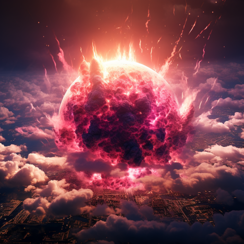 planet earth being destroyed, covered in pink mushroom clouds, pixar art, veiw of intire planet from space