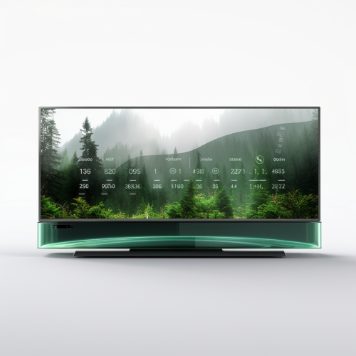 green nature on tv screen blends into lightstreaks and data lines that goes both sides:: front view ::realistic --no humans --style raw