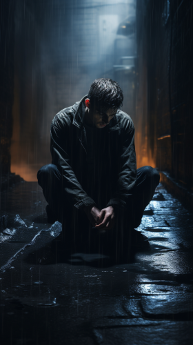 holistic approach to pain, tears and sadness, 3D, blue hues, --ar 16:9