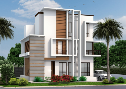 A modern apartment building made before in factory.
