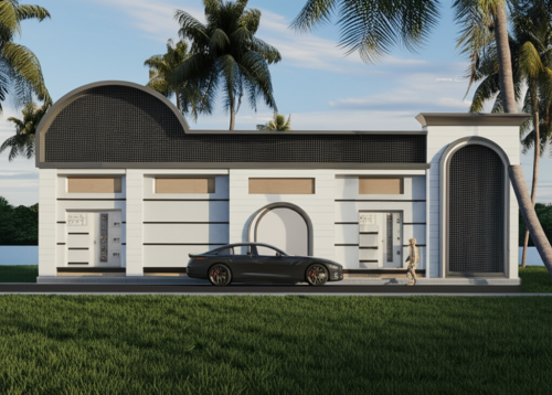 Modern Islamic, afternoon scene, lighting, human, road, coloured white grey and brown