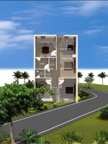 A Modern Two-Story Asian Home with Palm Trees.