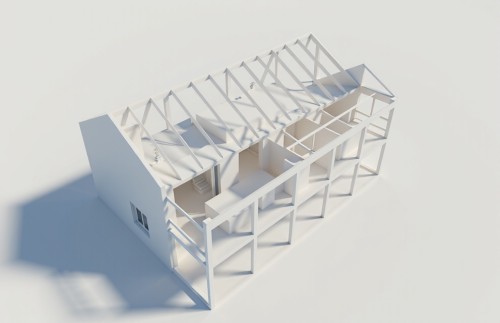 afternoon scene, white, grey, brown color, grass, clouds in sky, human, road, car
