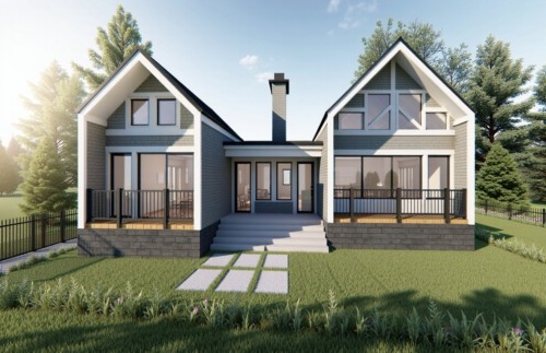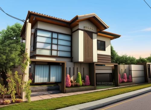 A peaceful neighborhood with houses and trees.