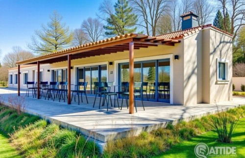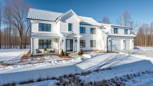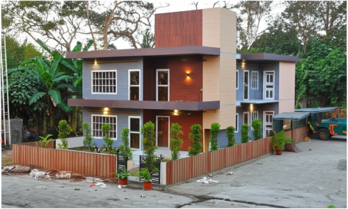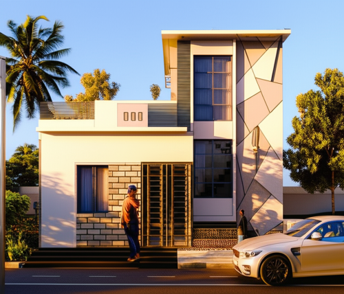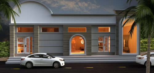 afternoon scene, grey, brown, white color, coconut trees, clouds in sky