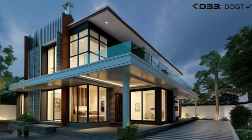 Create a modern living room design with a sophisticated palette of grey, white, and black. The flooring features large-format matte grey tiles, providing a sleek and seamless base. Introduce a feature wall for the TV area using vertical WPC flutes in a dark grey tone to add texture and depth. Incorporate contemporary furniture with clean lines, such as a plush L-shaped sofa in light grey fabric, complemented by a black metal coffee table with a white marble top. The TV console should have a black matte finish with subtle metallic accents to tie into the color scheme. For the doors, replace them with full-height black-framed glass pivot doors to enhance the modern aesthetic. Adjust the window layout by introducing slim-framed black aluminum windows, maximizing natural light while maintaining a bold design element. Add layers with a white textured area rug under the seating area and sheer white curtains paired with blackout roller shades in dark grey. Use subtle black accents through decor items like vases, lamps, and abstract wall art. To ensure warmth and balance, incorporate soft, ambient lighting with recessed ceiling lights and wall-mounted sconces." This design balances the neutral palette with texture, light, and bold contrasts, creating a refined and cohesive living space.