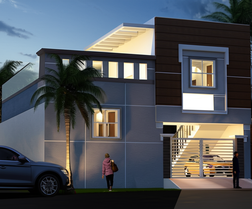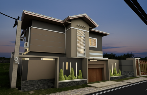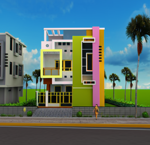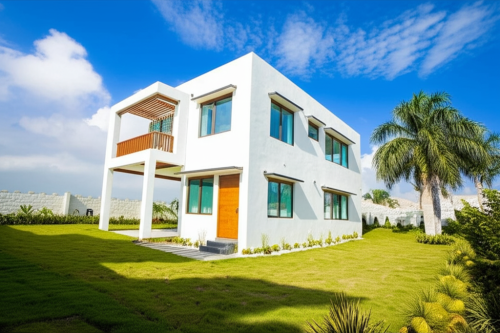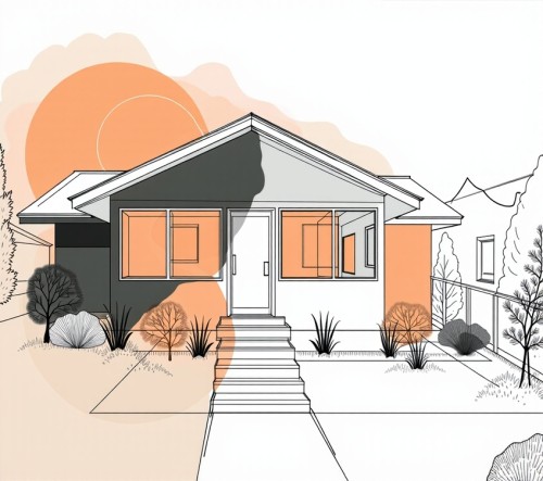 “Use my sketch and image as the reference. Do not change the floor plan or architectural layout. Keep all rooflines and structural details exactly as drawn. The exterior color must be Benjamin Moore Ballet White. Use a mix of 6-inch horizontal lap siding and Hardie shakes to add texture. Roofing should be wood shake shingles. Include a stone chimney stack for added charm and authenticity. The front door should be a natural oak finish, flanked by two gas lantern-style lights on each side. On the front right window, expand the cantilever and add a copper-clad bay window. Install copper gutters and downspouts along the roofline. The landscaping should reflect cottage garden style: white picket fence, limelight hydrangeas, layered shrubs, colorful flowers, and large decorative pots by the entry. The final result should enhance the design while staying true to the original sketch — warm, timeless, and elegant in French Country Farmhouse style. Do not change the shape or layout of the home.”