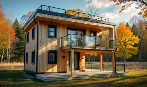 Modern house with terracotta screen and glass railing.