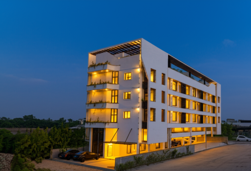 Contemporary house design with terracotta jali and glass parapet
