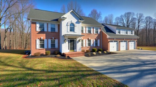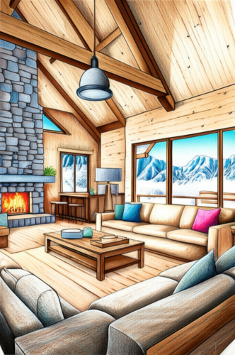 Scandinavian A-frame, black wood exterior, white concrete, glass walls, angular roof, snow dusting, zen garden, boulders, dwarf pines, LED path lights, floating deck, hot tub, forest view, frosted glass garage, twilight lighting, cool blue tones.
