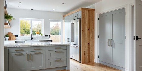 Refurbished supermarket building in a modern style, retaining key features of the original facade. Improved design with updated materials - glass, metal, concrete. The facade is equipped with dynamic LED lighting, emphasizing the architecture of the building, creating a volumetric effect. Entrance area with warm neon lighting, attracting attention. The roof is decorated with a stylish luminous sign Toimart, noticeable from afar. Stained glass windows with soft interior lighting, creating a cozy atmosphere. The parking lot is illuminated with modern LED lights, ensuring safety and comfort. The design reflects the balance between technology and brand recognition.
