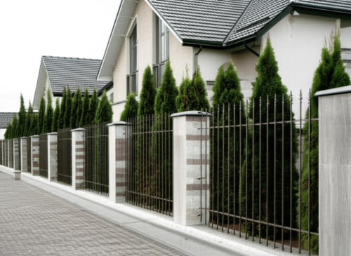 Modern house in tropical style, add bamboos, flowers, arica palms, travellers palm, afternoon time, light brown exterior, dar brown terracotta roof, cobbled pathway