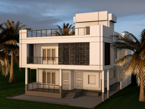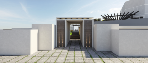 Tropical style ranch with bamboo, Buddha, pool, pastel.