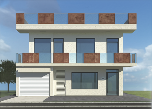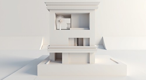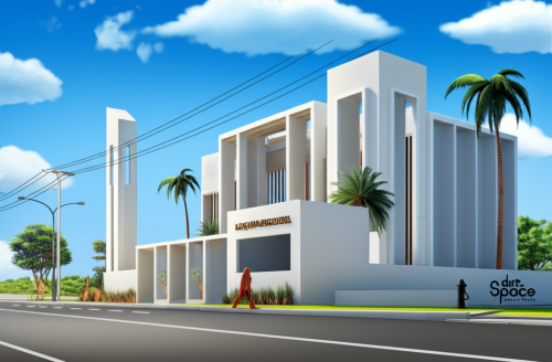 Need the same render with a better version by just adding a small dome with a metal moon on top of the right corner of the building and also one more dome on left corner of the minaret