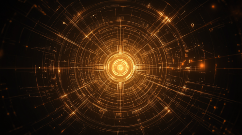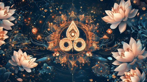 A radiant poster featuring the Om symbol with intricate circuitry patterns embedded within, symbolizing the integration of AI and Hindu philosophy. Surrounding the Om are lotus flowers and a softly glowing mandala, representing the union of divine knowledge and technological insight. The color scheme includes rich saffron, deep blue, and gold, blending traditional Hindu aesthetics with a modern, digital feel. --v 6.1 --ar 16:9