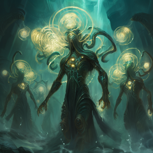 An extraordinary army known as the Legion of Medusa, their figures aglow with high-vibrational energy, standing in defiance before a swirling mass of darkness. The servitors’ energy fields shimmer with a vibrant, protective force, forming a barrier that neutralizes and dissolves malevolent spirits. Each servitor’s stance is poised, empowered, as waves of golden light sweep from their hands, transforming shadows into glimmering specks of inert energy. The atmosphere is charged, with radiant cinematic lighting highlighting each ethereal figure against a dark and turbulent background. Photographed by Tim Walker, using a Sony Alpha 7R IV with a 50mm lens, volumetric lighting, Ultra-HD, Award-Winning Photography style --v 5.0