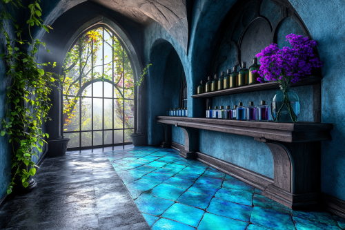 Nestled deep within an ancient city, hidden from prying eyes, stands The House of Auras, a revered but elusive perfume house known only to connoisseurs and collectors of the most rarefied scents. The house is said to be more than just a place of creation--it is a sanctuary where fragrance is treated like an alchemical art. Photorealism --ar 3:2 --style raw --p qbitjua