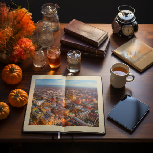 a piece of paper stylerd as staionary with a michgan late summer theme with hints of fall . the center of the paper is white so that it could be written on --ar 9:14 --v 6.1