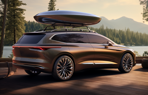 2023 buick roadmaster concept family station wagon, parked at theme park, parking lot, luggage mounted to roof rack , 8k, --ar 14:9 --s 50