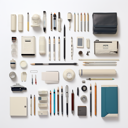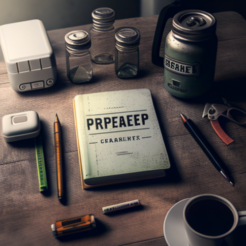 create image of stationary items with brand name Prepper on them, neatly placed on a white study table