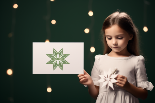 a photo of an elegant white mockup card, stylish green color palette, aesthetic, minimalist, Christmas mood, flat lay, depth of field --no text --ar 3:2