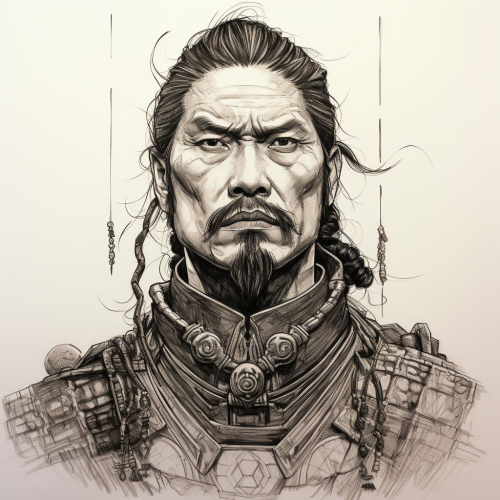 jangkak of the threekingdoms leader of his troops, jangkak of the threekingdoms leader of his troops, ink, pen, serious face