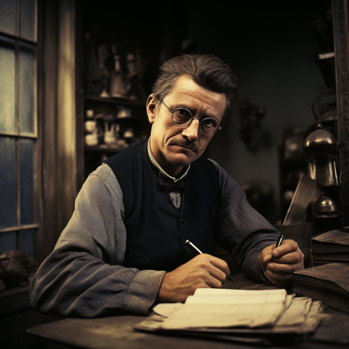 Middle-aged, glasses, quill, notebook. Photo London 1900 --s 250