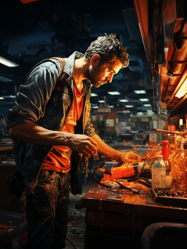 Man cleaning the windshield of a car at a gas station with a brush, --ar 3:4 --s 750