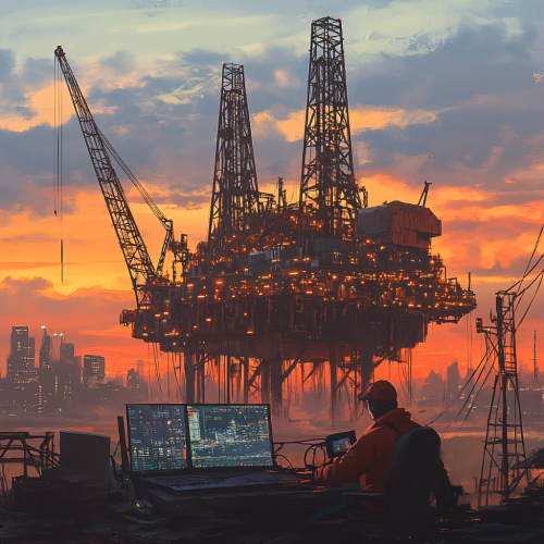 a country rich on oil, now investing in video games to be the next big export article. Picture a big oil rig full of rust, and game developers sittting by computers and making video games that har shipped abroad. Artistic