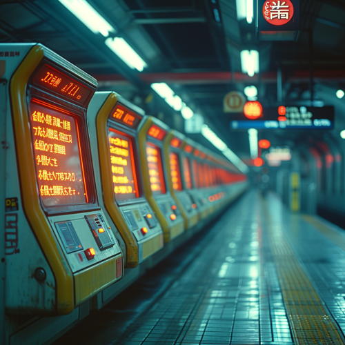 a metro station full of Microsoft computers and windowsxp on the info signs, photorealistic, hyperrealistic, depth of field, photography, Canon EOS 5D Mark IV DSLR camera, Cinematic, iso 6400, photography, --q 0.5 --v 6.0 --s 750