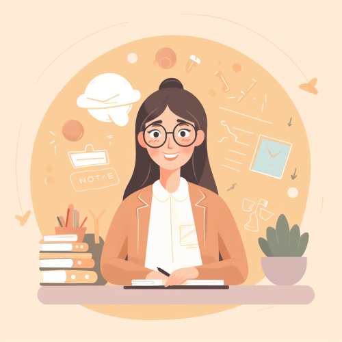 "A simple, friendly Artificial Intelligence home tutor in a 2D illustration style, with a soft, calming color palette. The character has a warm smile, wearing a smart-casual outfit in neutral tones, and is surrounded by subtle educational elements like books, a chalkboard, and pencils. The background is minimalistic with light pastel colors, creating an inviting and supportive atmosphere. The AI home tutor appears approachable and patient, gently gesturing as if explaining a concept or assisting with learning." --v 5.2 --s 50