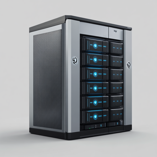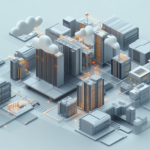 Generate a photorealistic version of A photorealistic image of a modern data center with a blend of on-site servers and cloud icons representing hybrid cloud strategy. The scene should be professional and futuristic, using shades of light gray and white. --ar 1:1 --quality .5