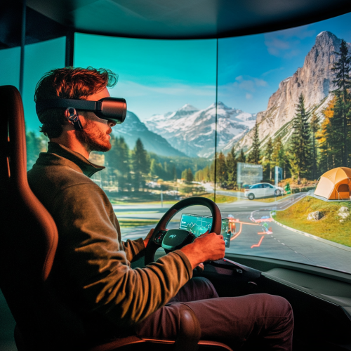 rendering of 400 square meters open space used as a training center. the training is provided through virtual reality and interaction design. use technology available on the market. --ar 16:9 --v 6.0