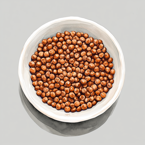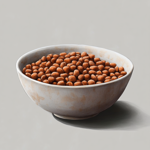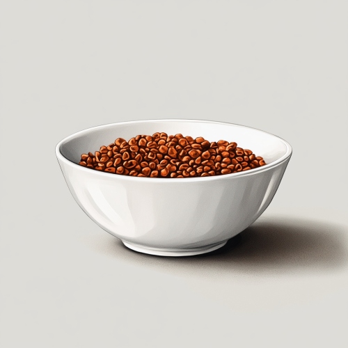 highly detailed photorealistic watercolor beautiful white porcelain bowl, full bowl of brown granules, beautiful illustration with realistic details, high resolution, gray background
