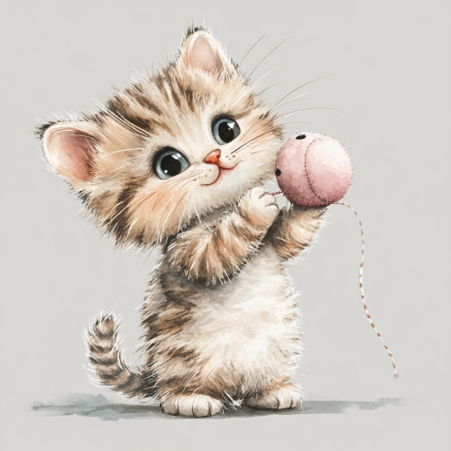 highly detailed watercolor clipart of a beautiful cat toy, the toy is a small plush mouse, luxurious aesthetics, beautiful illustrations with realistic details, high resolution, gray background