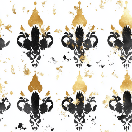 Seamless pattern: Khmer pattern. Painted with a brush and heavily diluted watercolors. black and white pattern with gold splashes. with elements such as drops of mascara and golden splashes of oil paint. with a thin black outline. Abstract drawings. white background. Seasonal printable patterns --tile --v 6.1