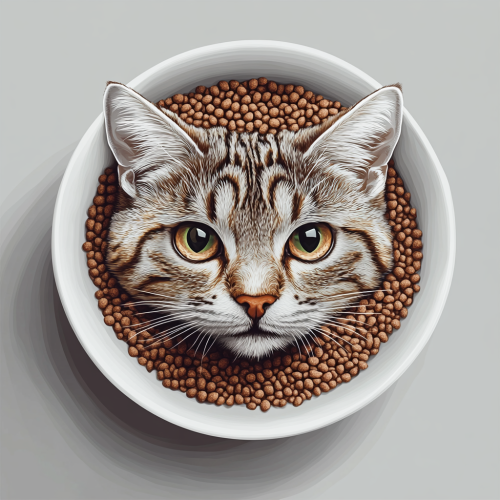 highly detailed photorealistic watercolor beautiful white porcelain bowl, full bowl of brown granules, cat head shaped bowl, beautiful illustration with realistic details, high resolution, gray background