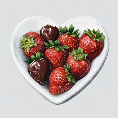 highly detailed watercolor clipart of multiple strawberries covered in chocolate, in a beautiful white porcelain heart shaped bowl, luxury aesthetic, beautiful illustration with realistic details, high resolution, gray background