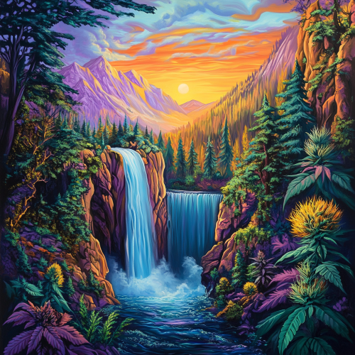 don't go chasing waterfalls beautiful mountains valleys of marijuana nugget artwork amazing details the art is so deep and colorful everywhere you look there's something new